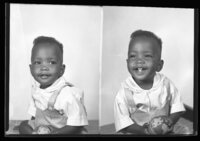 Unidentified boy [457] Young boy posing in portrait studio. -
