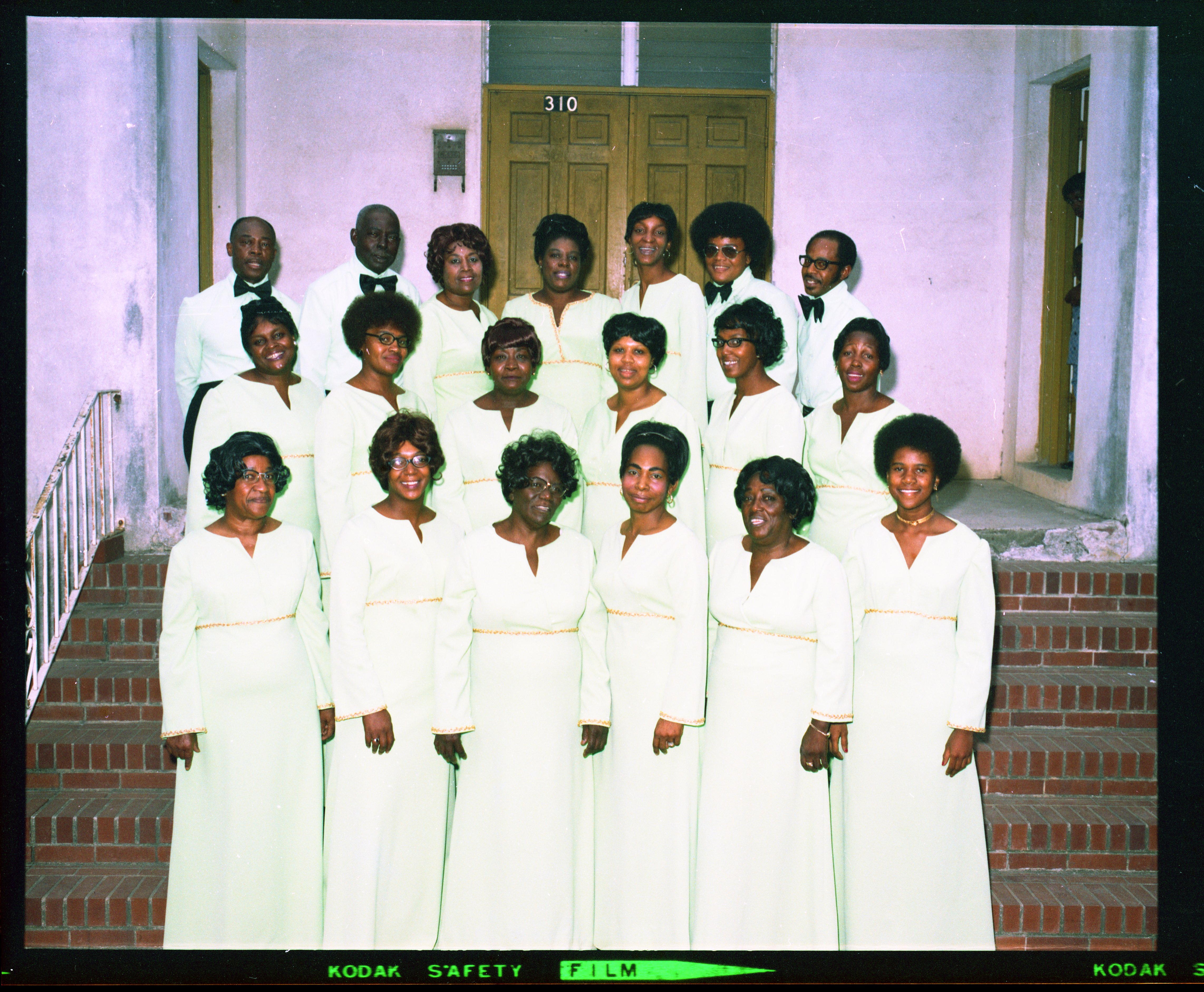 Back row (L to R): Lewis Thomas, Lewis Curtis, Sherrell Nelson Hart (pianist/organist), Janie L. Thompkins, Bernice Nelson, Clifford Palmer, Franklin (Frank) Sallette