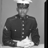 - Man posing in Marines uniform.