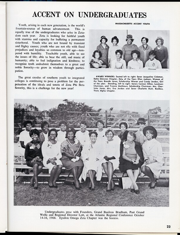 Magazine page from The Archon featuring the article “Accent on Undergraduates,” published in December 1966. The page highlights the participation and achievements of undergraduate members of Zeta Phi Beta Sorority, Inc., emphasizing the organization’s commitment to leadership development, scholarship, and sisterhood among college students.