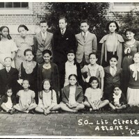 Anne Thomas, identified in the caption data as having long curls, appears in the back row, second from the left. Social and literary circles such as this were common community and youth organizations in African American communities during the early twentieth century. These groups often fostered reading, public speaking, social development, and intellectual engagement among young people. The photograph documents youth participation in organized educational and cultural activities in Atlanta during the Great Depression era.