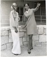 Gloria L. Smith (left) Miss Black America and Reda Wyatt (right) Miss Atlanta NAACP at Paschal Brothers Motel Photograph of Gloria L. Smith (left), Miss Black America, and Reda Wyatt (right), Miss Atlanta NAACP, standing outside the Paschal Brothers Motel in Atlanta, Georgia, October 19, 1969. Both women are dressed in late-1960s fashion, with Wyatt gesturing in the distance. The Paschal Brothers Motel was an important gathering place for African American civic leaders during the Civil Rights era. Photograph by Harmon Perry. -