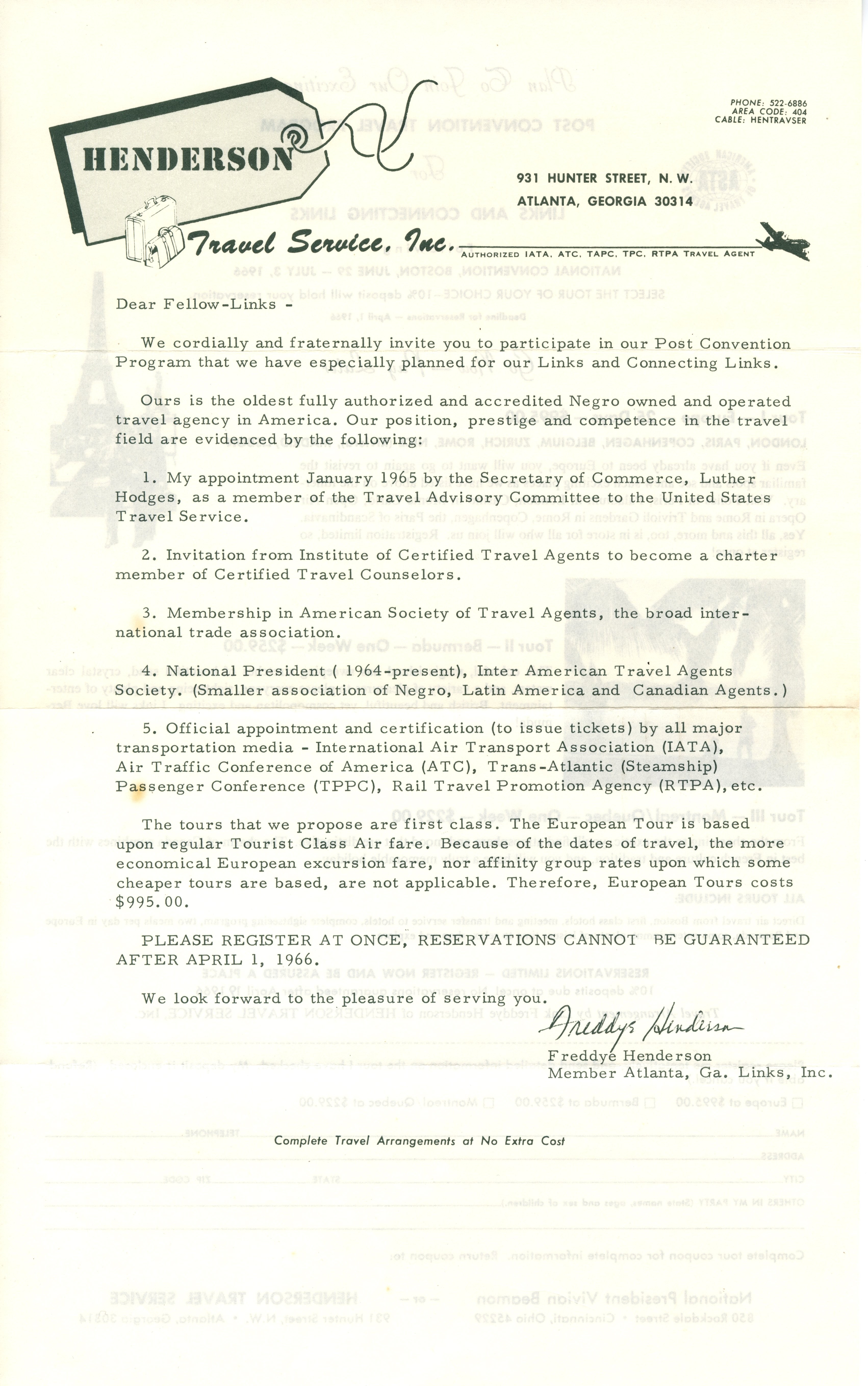 Henderson Travel Service 1960s Freddye Henderson Links