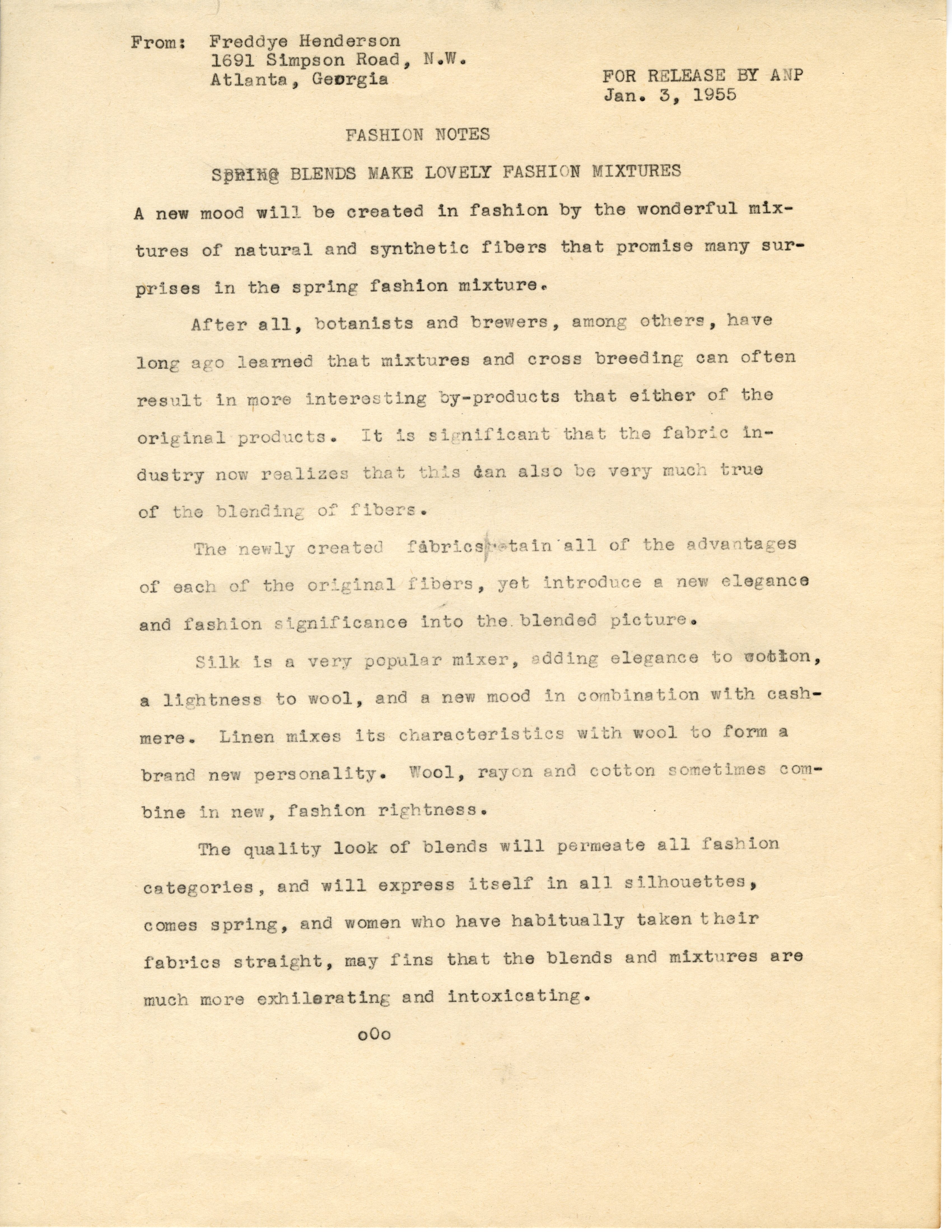1950s Freddye Henderson National Association Fashion and Accessory Designers Black Magazines Associated Negro Press Fashion Trends
