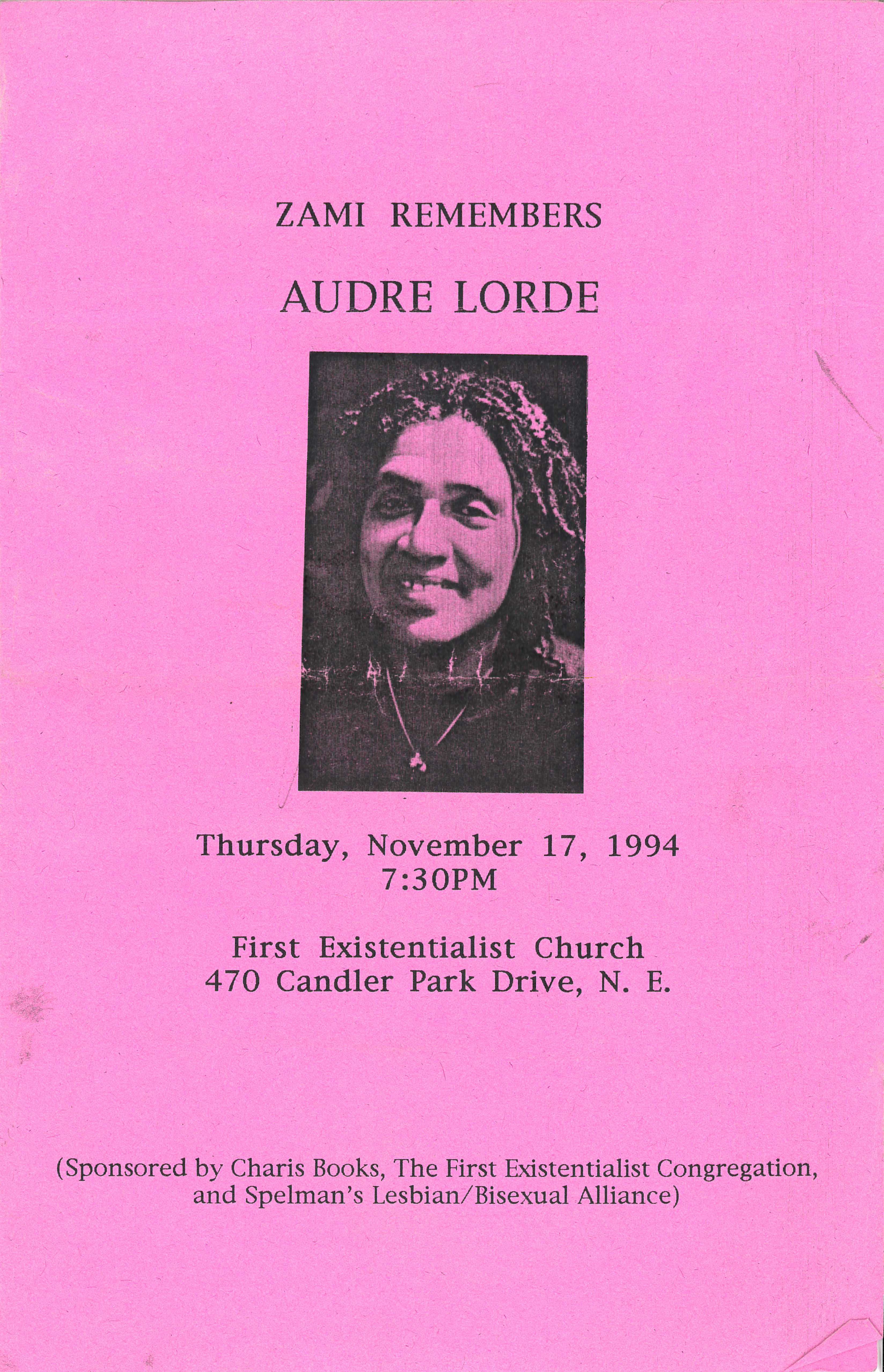 ZAMI Remembers Audre Lorde Event Flyer