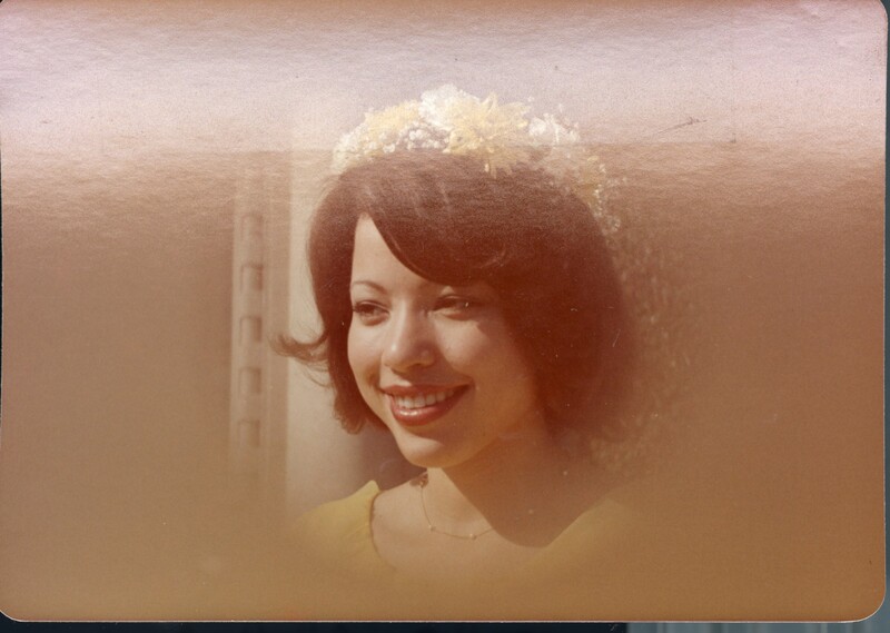 - Color portrait photograph of Selena Sloan Butler's granddaughter Darrilyn Selena Butler at age 20, wearing a floral headpiece and smiling while looking off-camera, circa 1973.