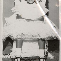 - Young girl dressed up and sitting on decorated chair, undated