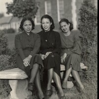 The photograph captures a moment of camaraderie and pride among the young women during a community pageant event. Informal yet composed, the image reflects the social networks and celebratory traditions that brought young Black women together through school, community events, and local recognition. - Type
